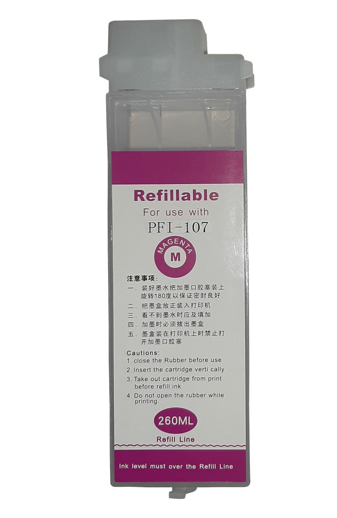 Перезаправний (дозаправний) картридж (ПЗК/ДЗК) тип F4 з чипом PFI-104 Magenta для плоттерів Canon imagePROGRAF iPF650, iPF750, iPF760, iPF765. Об'єм картриджа 260 мл. Простий у встановленні та заправленні. Необхідно зняти притискні кришки у відсіку картриджів.